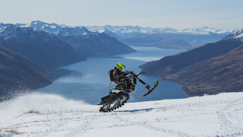 Travel out on side-by-side 4x4 vehicles into the backcountry and direct professional snowbike riders for brand and action shots. This is as remote and cinematic as it gets. Focus on machine, rider, and landscape composition.